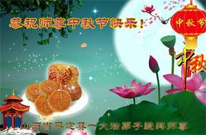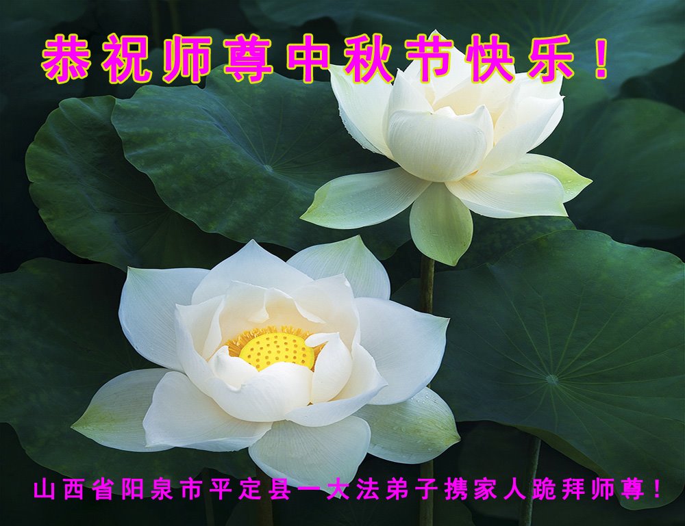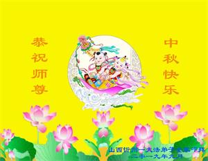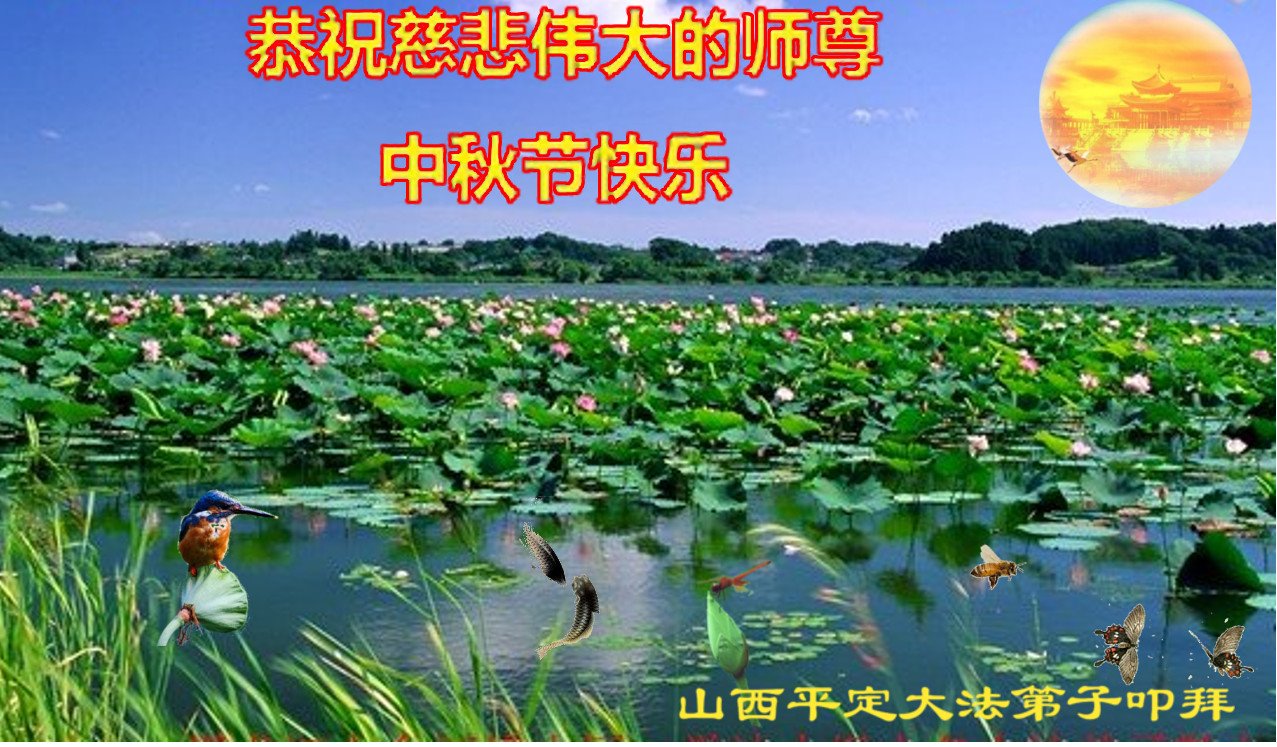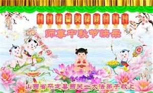 山西省陽泉市三區兩縣全體大法弟子恭祝慈悲偉大的師尊中秋節快樂!
