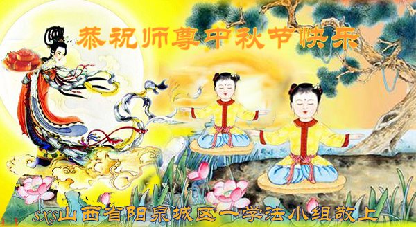 山西省陽泉市北大街一學法小組大法弟子們恭祝慈悲偉大的師尊中秋節快樂!