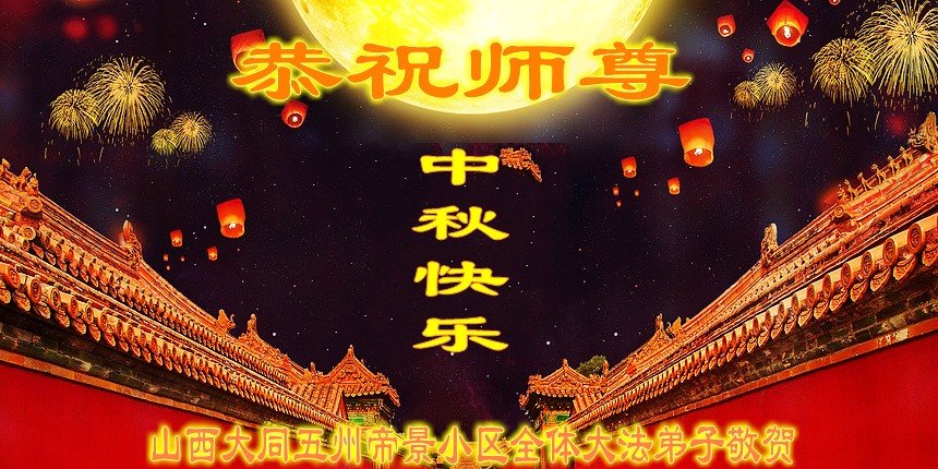 值此中秋佳節到來之際,我們山西省汾西縣全體大法弟子恭祝慈悲偉大的師尊中秋節快樂!弟子盼望著早日能夠與師尊團聚。弟子在這以師尊無量慈悲和洪恩浩蕩延續下來的最後有限的時間裏一定要做好三件事,緊跟師尊正法進程,堅修大法到底,越最後越精進,堅修大法的心如磐石般無論遇到任何阻擋都無可撼動。真、善、忍的種子已深深的紮在弟子的心田和生命的本源,我們會將大法的美好和殊勝以己之力洪傳給遇到的每一位有緣眾生,廣傳真相救度眾生,圓滿隨師還。感恩師尊的慈悲苦度! 合十