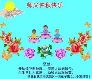 湖北省武漢市武昌區一老大法弟子攜女兒全家恭祝師尊中秋節快樂!