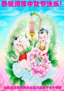 山東省濟南市兩朵小花大法弟子恭祝慈悲偉大的師尊中秋節快樂!叩拜師尊!