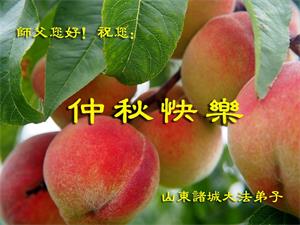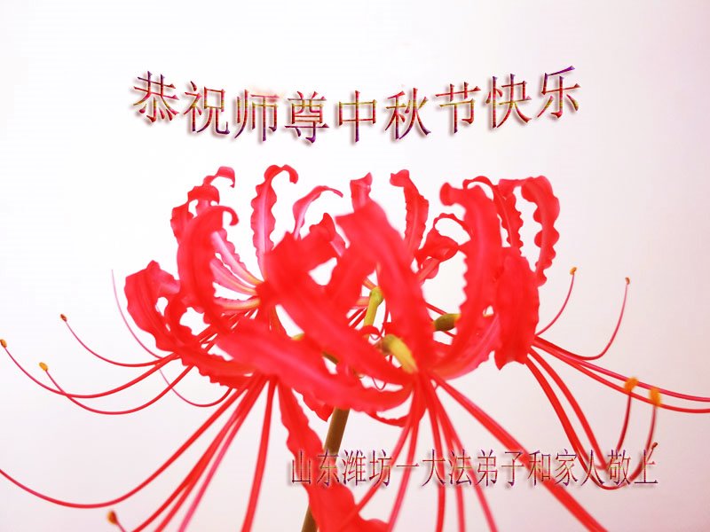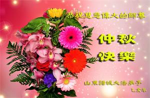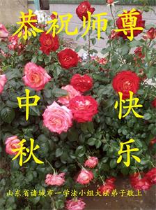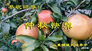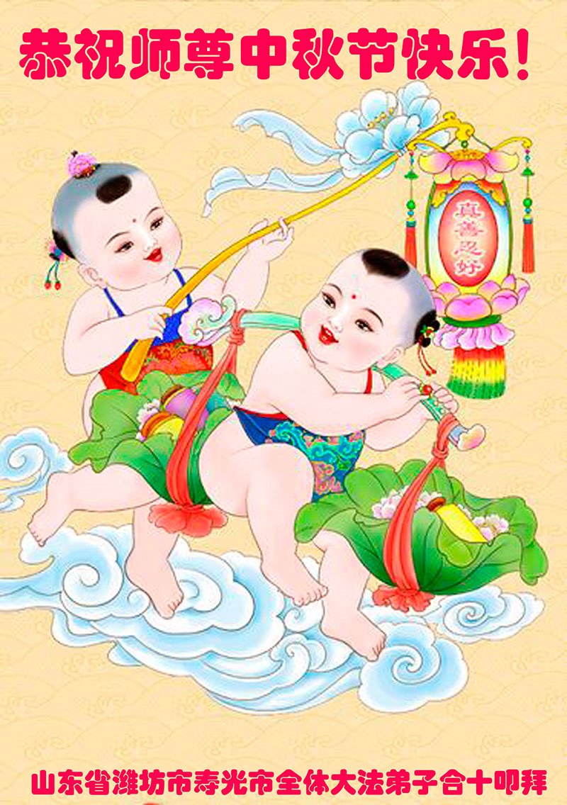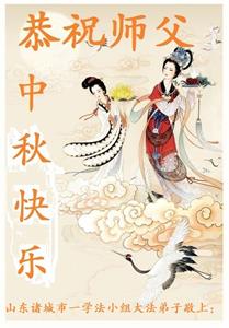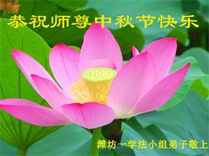 藉此中秋佳節,我們坊子區大法弟子向尊敬的師父致以節日的祝賀!祝師父節日快樂!謝謝慈悲師父的救度之恩。我們會努力做好三件事,跟上正法進程,跟師父回真正的家園。