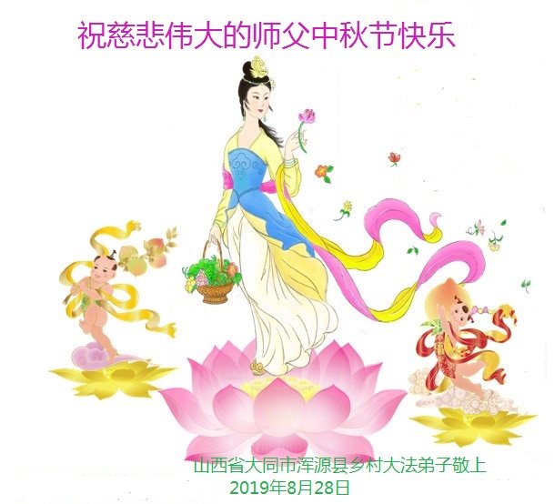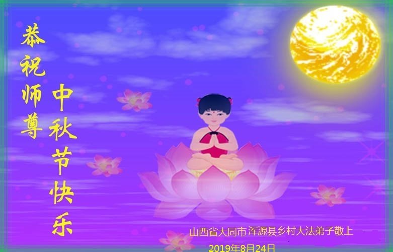 山西省平定縣的鄉村大法弟子們恭祝慈悲偉大的師尊中秋節快樂!