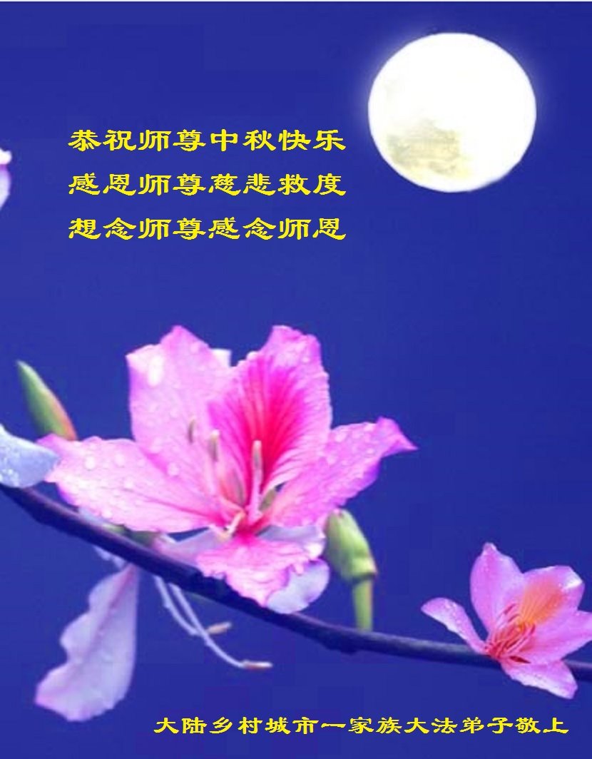 大陸鄉村城市一家族大法弟子恭祝慈悲偉大的師尊中秋好!中秋快樂!