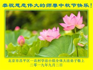 北京市昌平區一農村學法小組全體大法弟子恭祝慈悲偉大的師尊中秋節快樂!
