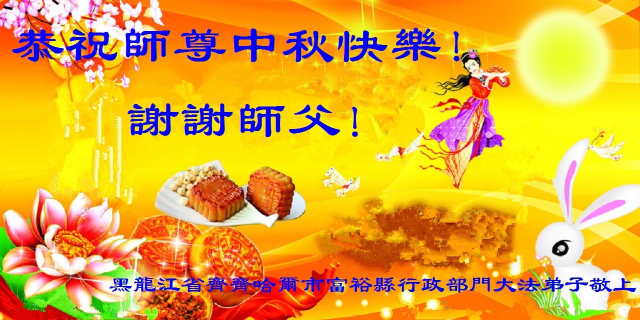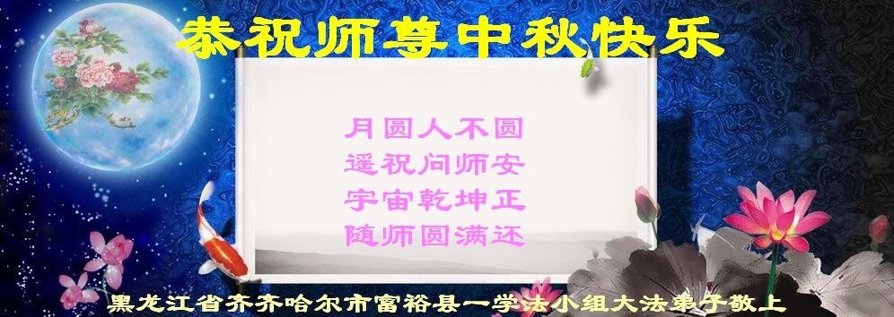 黑龍江省齊齊哈爾市富裕縣全體大法弟子恭祝師尊中秋快樂!