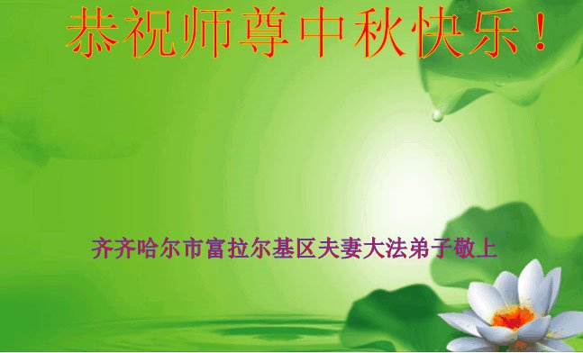 黑龍江省齊齊哈爾市富拉爾基區夫妻大法弟子恭祝師尊中秋快樂!