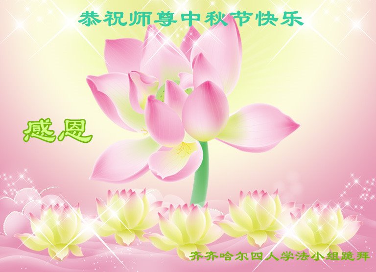 黑龍江省齊齊哈爾四人學法小組大法弟子恭祝師尊中秋節快樂!
