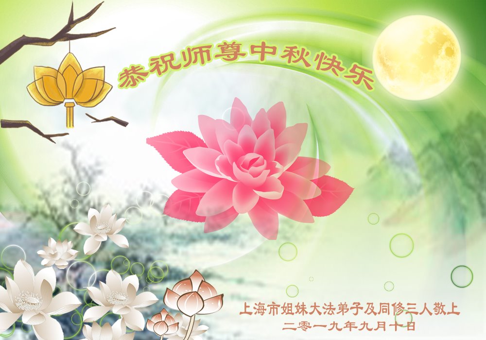 上海市姐妹大法弟子及同修三人恭祝師尊中秋節快樂!