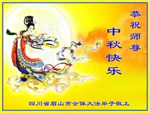 四川省眉山市全體大法弟子敬祝慈悲偉大的師尊中秋節快樂!