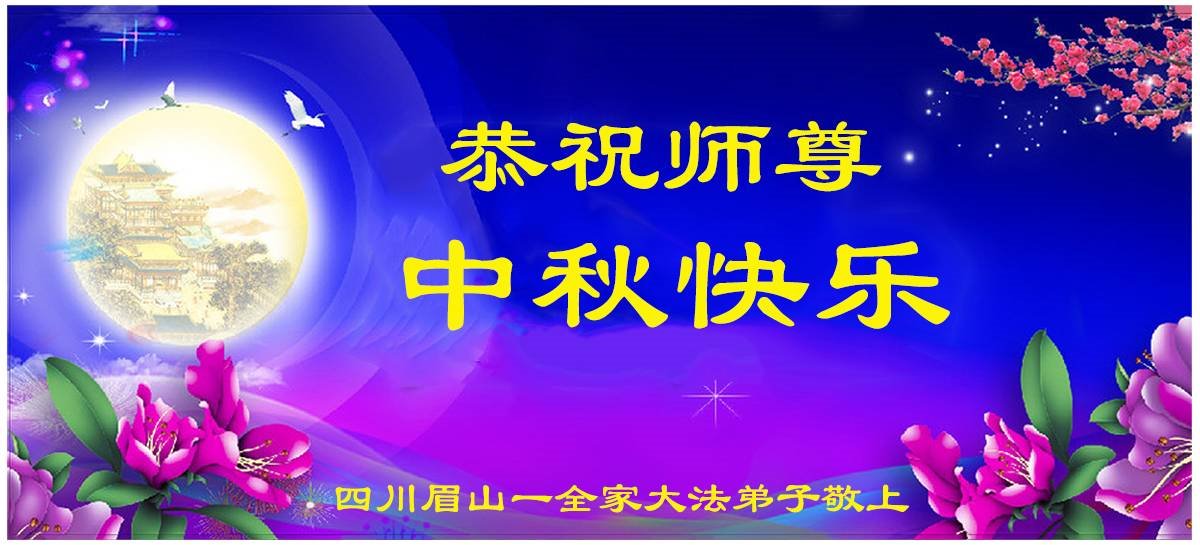 四川省眉山市一全家大法弟子遙祝無量慈悲偉大的師尊中秋快樂!