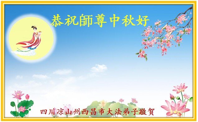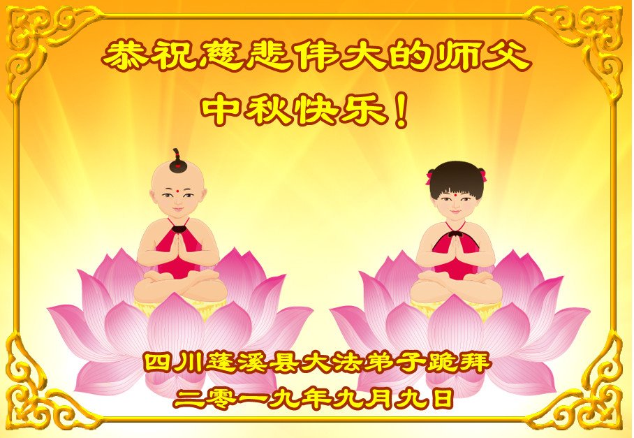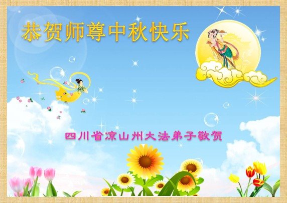 四川省平昌縣一大法弟子全家恭祝慈悲偉大的師尊中秋快樂!