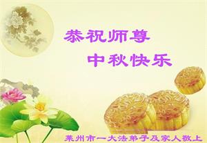 山東省煙台市萊州市一大法弟子及家人恭祝師尊中秋快樂!