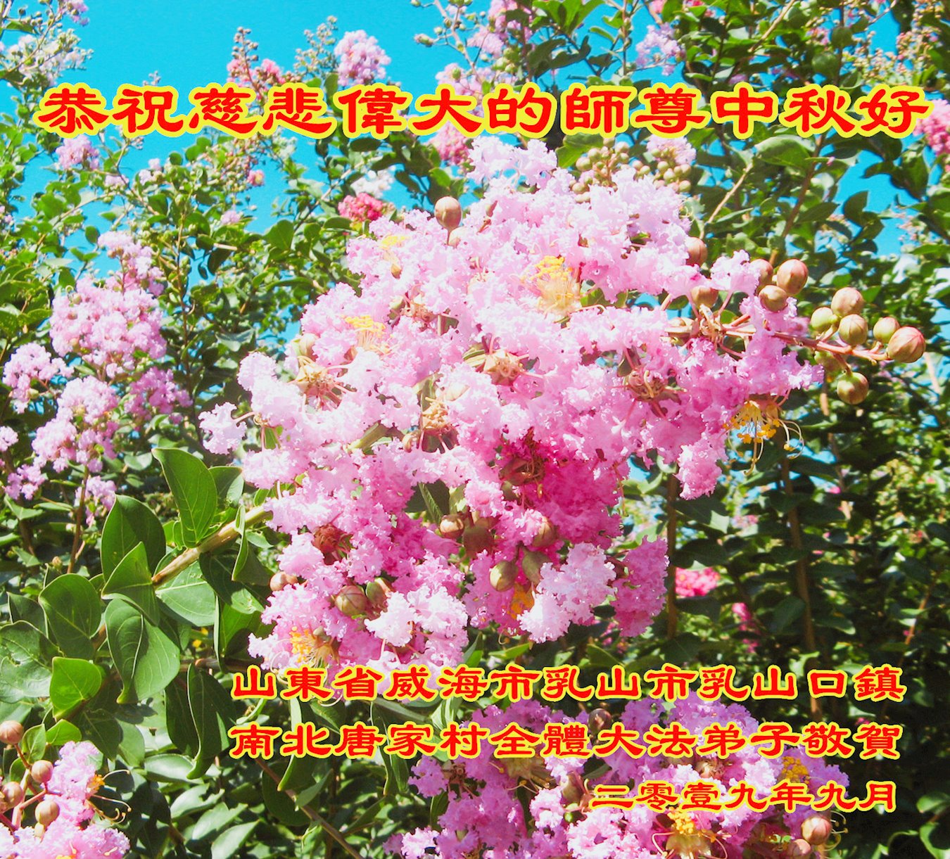 山東省威海市乳山市乳山口鎮南北唐家村全體大法弟子恭祝慈悲偉大的師尊中秋好!