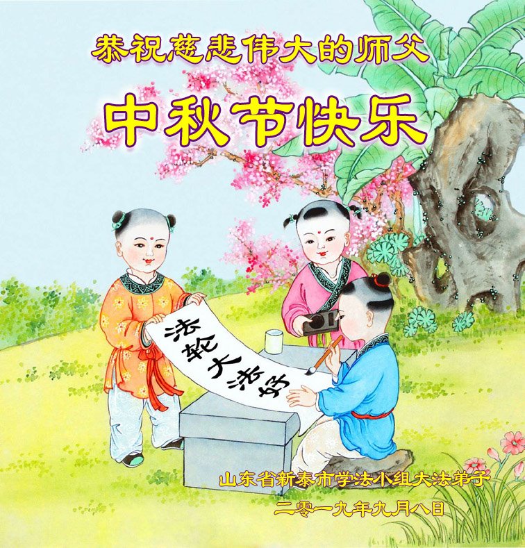 山東省泰安市新泰學法小組大法弟子恭祝慈悲偉大的師父中秋節快樂!