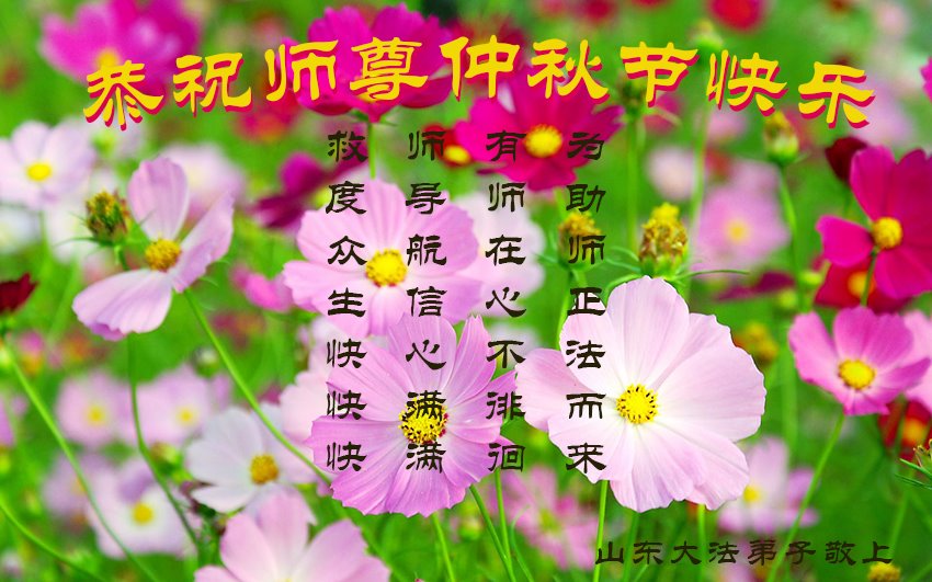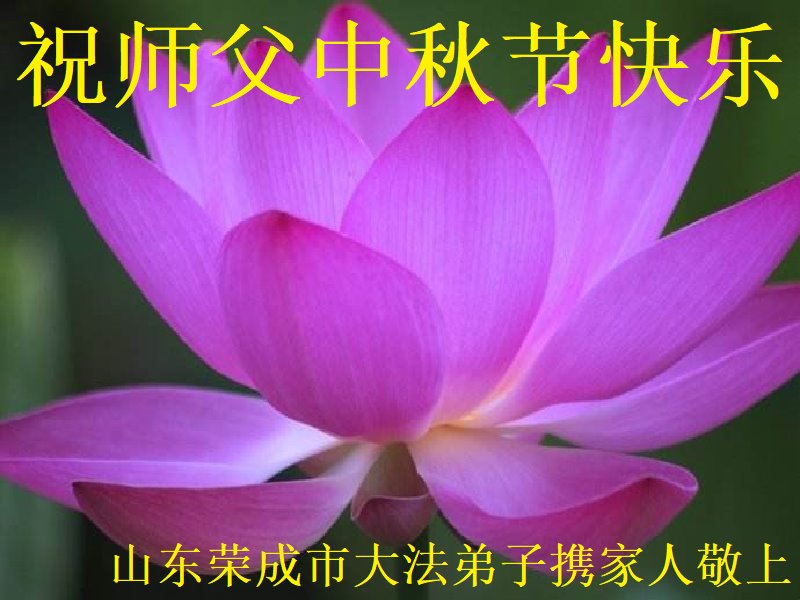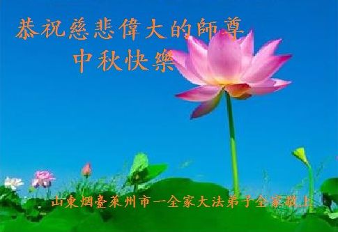 山東省威海市榮成市兩名大法弟子恭祝慈悲偉大的師父中秋節快樂!師父每時每刻都在看護著弟子,我們只有精進實修,完成史前大願,做好三件事,不辜負師父的期盼。謝謝師父。