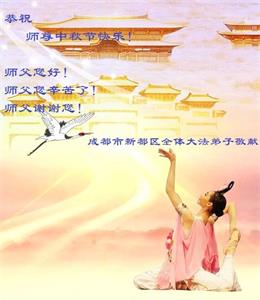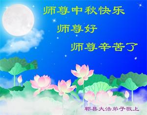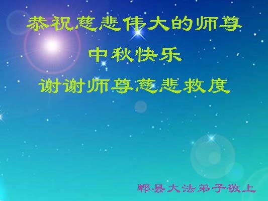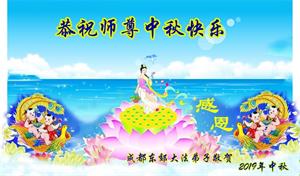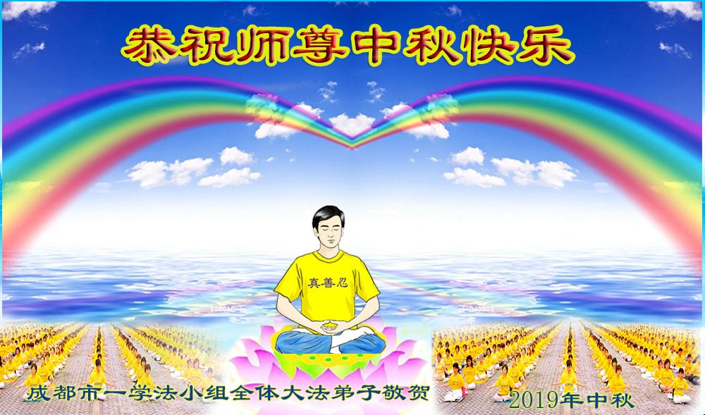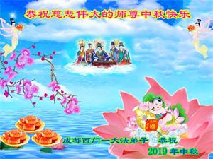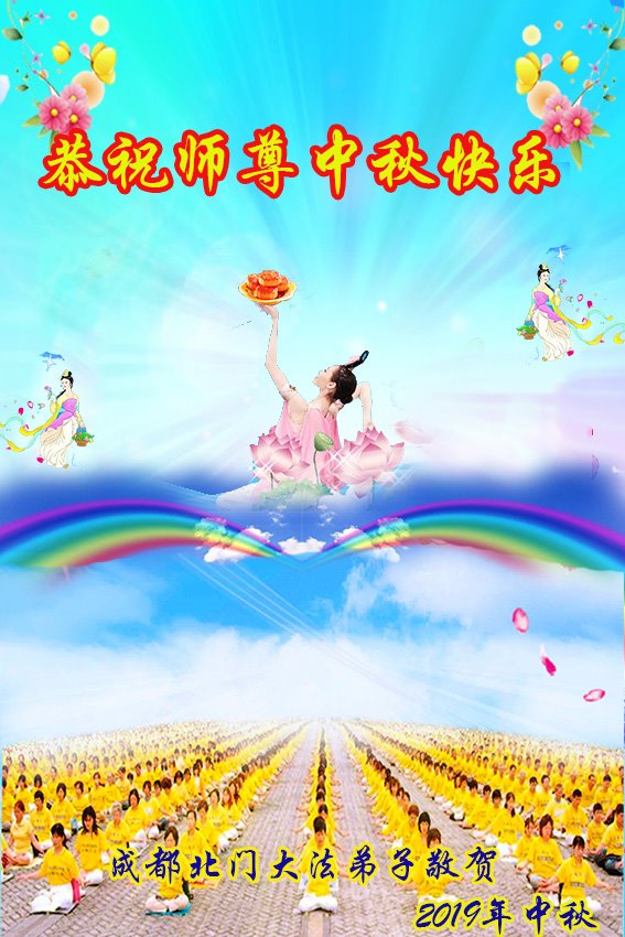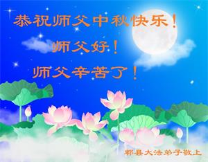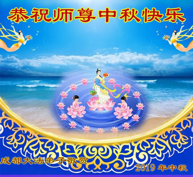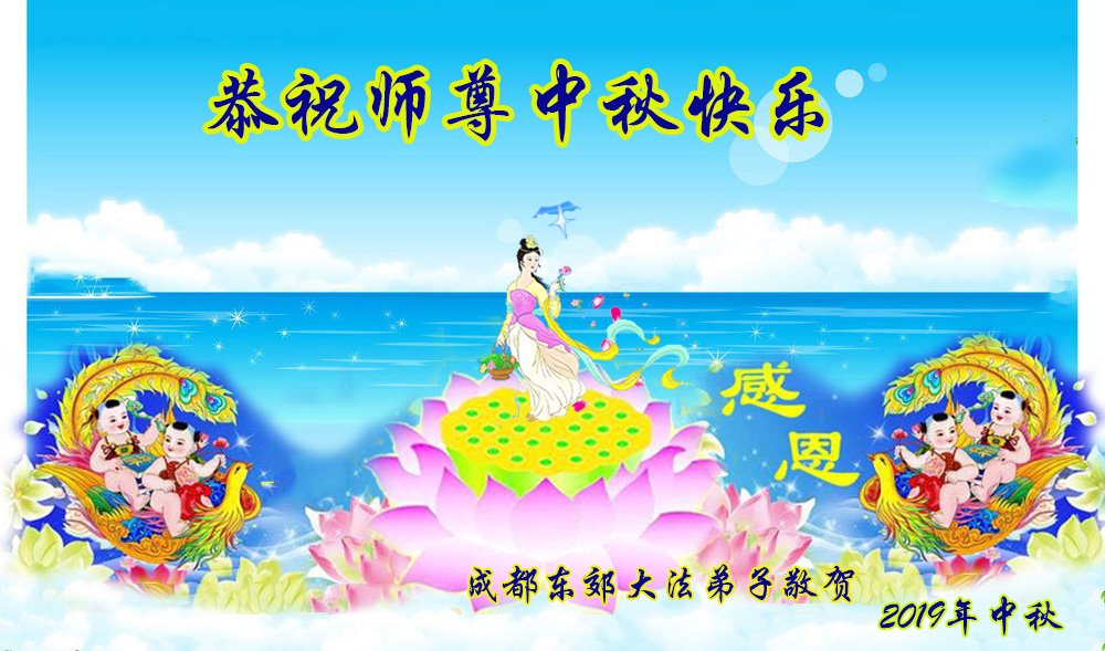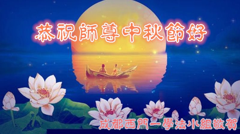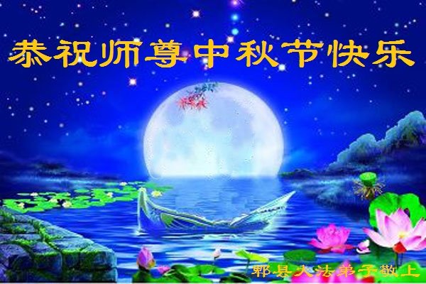 又是八月十五團圓時,我們想念遠在大海那一邊的師父啊。為了救度眾生,師父您跨洋過海把最美好的法輪大法傳到了世界一百多個國家和地區,使人類從此找到了回天的路。佛光普照,禮義圓明。人們發自內心的呼喚:「法輪大法好,法輪大法屬於全人類,世界需要真善忍。」二十年來,一切都越來越好, 一切都在回歸。這是師父的偉大,這是師父的威德,這是師父的慈悲。我們有幸走進大法修煉成為大法弟子,是師父的賜予,是歷史的選擇。我們要牢記師父的教誨在這最後的時刻,完成好大法弟子神聖的使命,學好法,修好自己,多助師救人,沒做好的要抓緊跟上進程,走好最後的路,不辜負師父的期望。