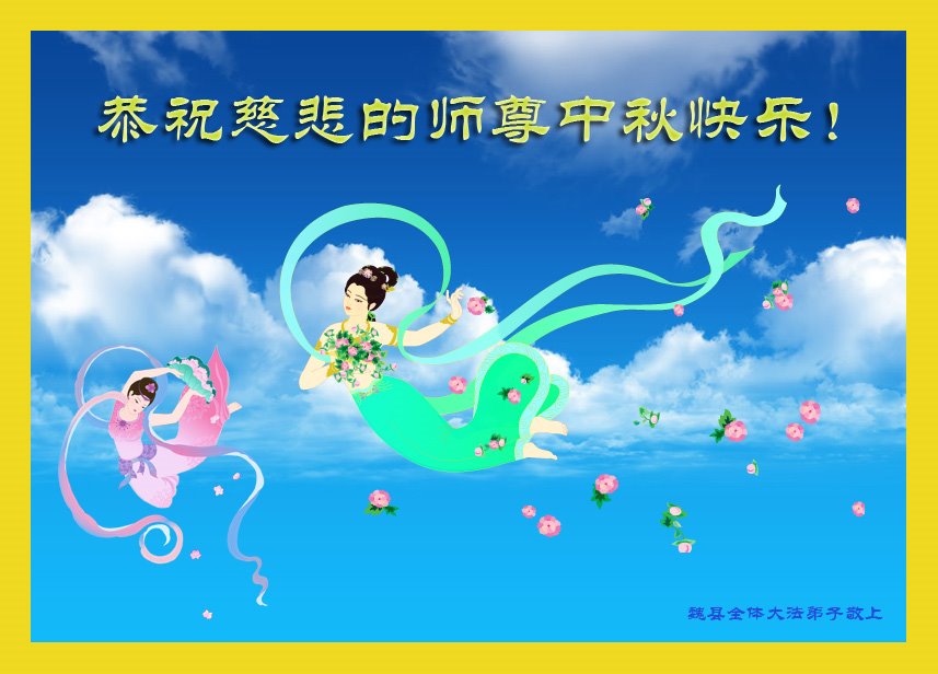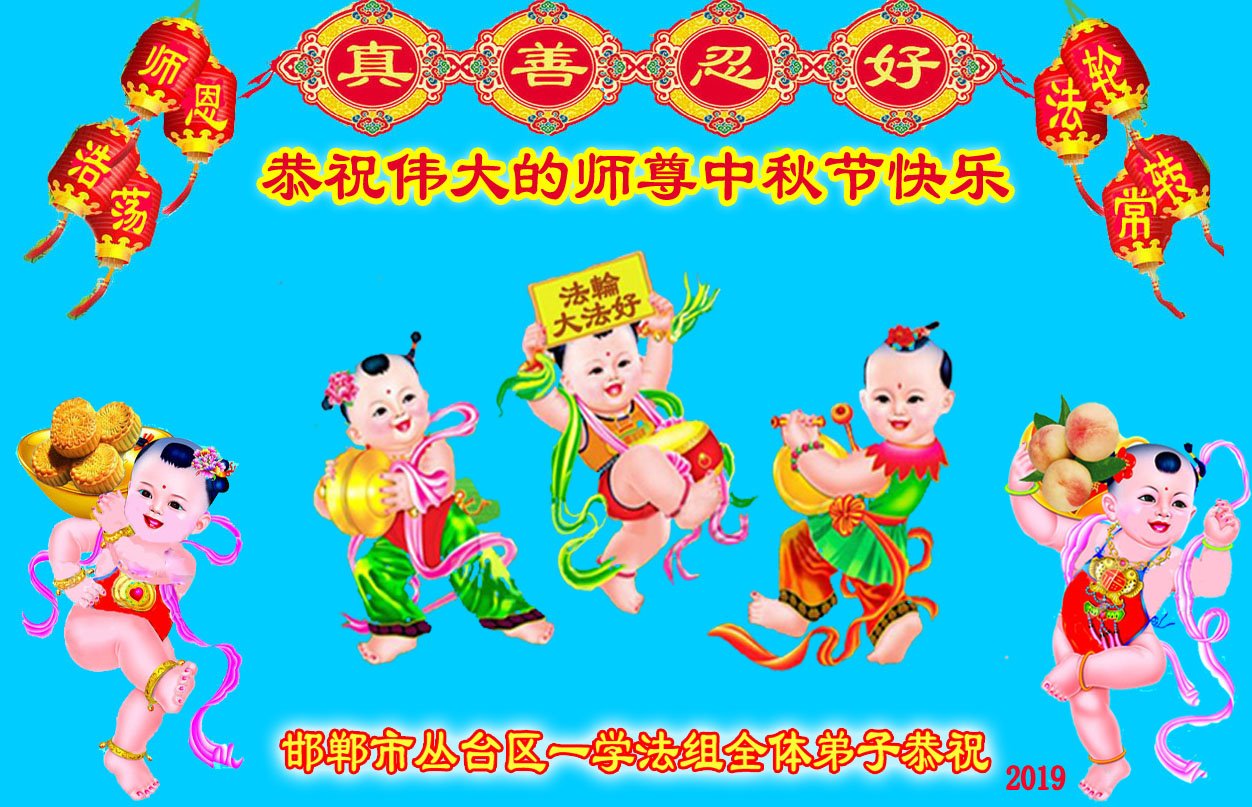 在2019年中秋節到來之際我們學法小組全體學員衷心祝願:師父中秋節快樂!
