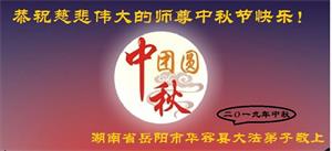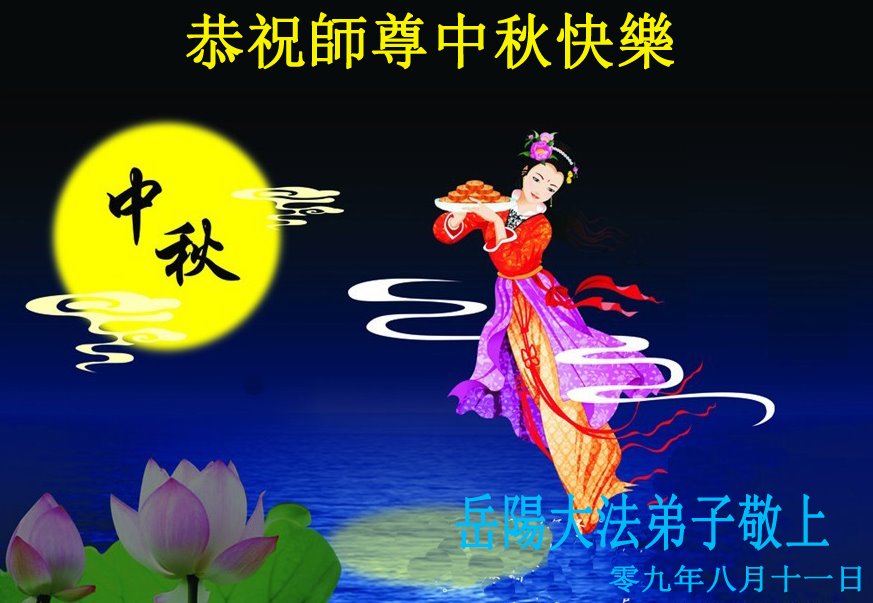 傳統的中秋佳節來了,在這天上月圓,人間團圓的中秋之時,我們岳陽全體大法弟子向慈悲偉大的師尊致以親切的問候和崇高的敬意!祝師尊中秋節快樂!