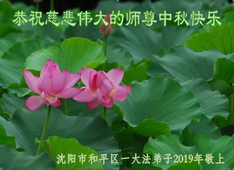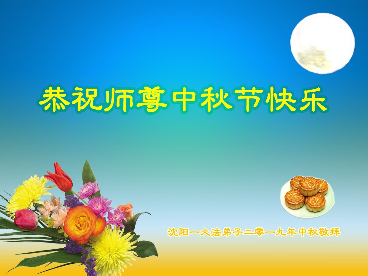 瀋陽全體大法弟子恭祝師尊中秋節快樂!請師尊放心,瀋陽大法弟子一定做好三件事,不負師恩,成就師父所要的,成就大法所要的。救度更多眾生,助師世間行,完成大法弟子歷史使命。