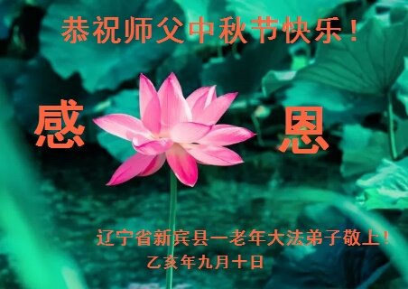 遼寧省撫順市新賓縣一老年大法弟子恭祝慈悲偉大的師父中秋節快樂!