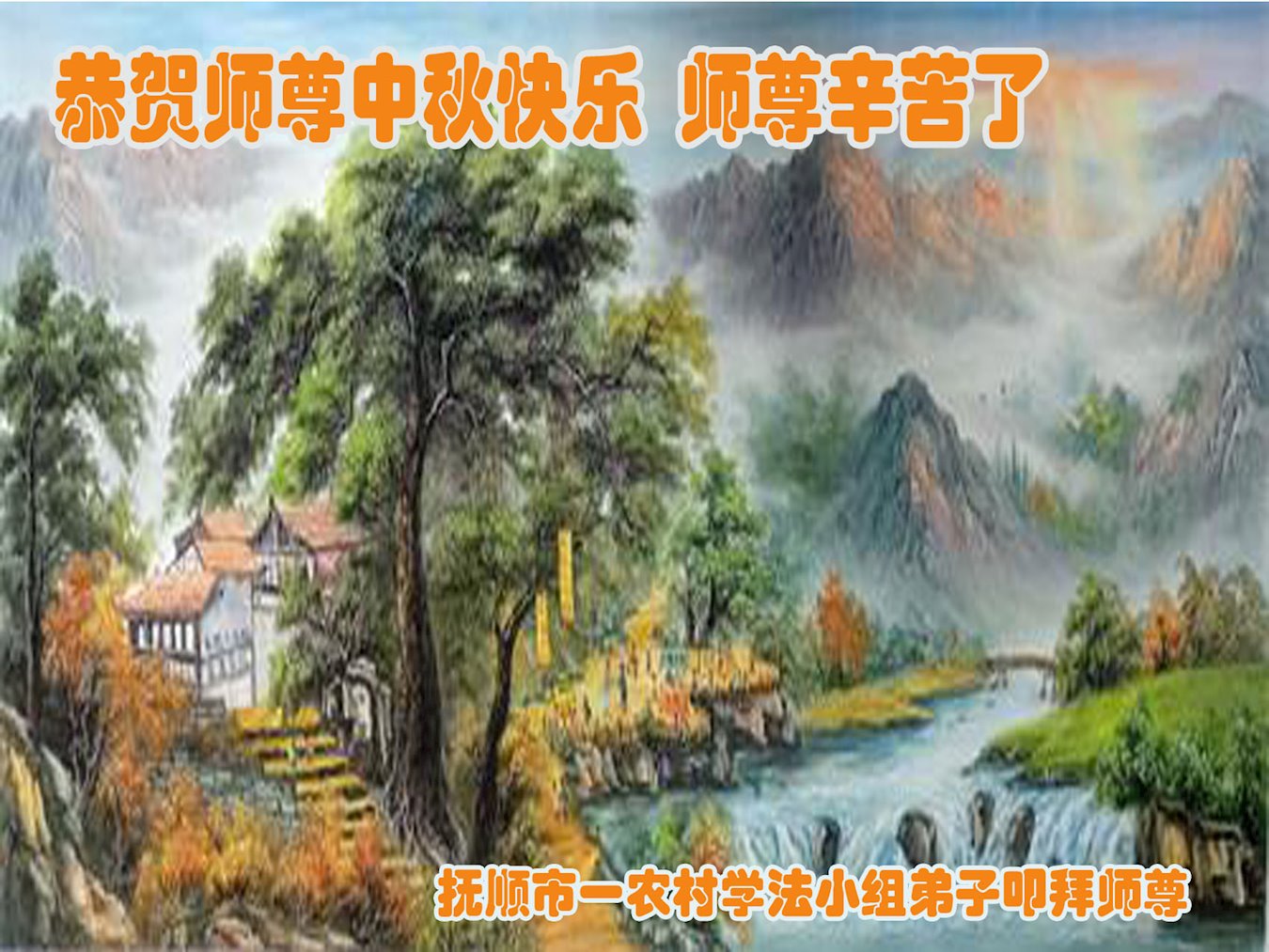 師父好!我們學法小組在您的慈悲保護下,一直平穩的走在證實法的路上,同修們越來越知道向內找,走在修煉路上越來越穩健,弟子們謝謝師父的慈悲看護,千言萬語也道不盡弟子們的感恩,師父辛苦了!祝師父中秋快樂!