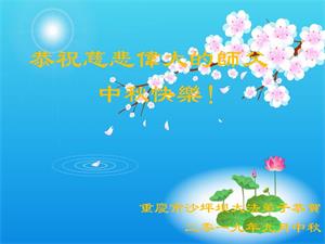 二十多年來,師尊保護著我們在大法修煉中走到了今天!師尊給予了我們的太多太多,千言萬語也無法表達師尊對我們的慈悲救度!我們一定多學法,學好法,向內找修好自己,做好三件事,助師正法,救度眾生,圓滿隨師還值此中秋佳節之際,感恩師尊的慈悲救度!