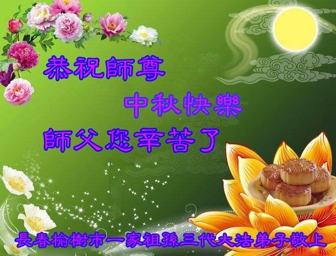 吉林省長春市榆樹市一家大法弟子恭祝師尊中秋節快樂!