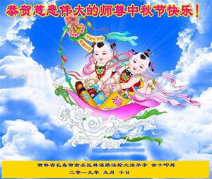 值中秋佳節來臨之際,德惠大房身鎮大法弟子恭祝遠隔重洋的偉大慈悲的師尊:祝師尊節日愉快!