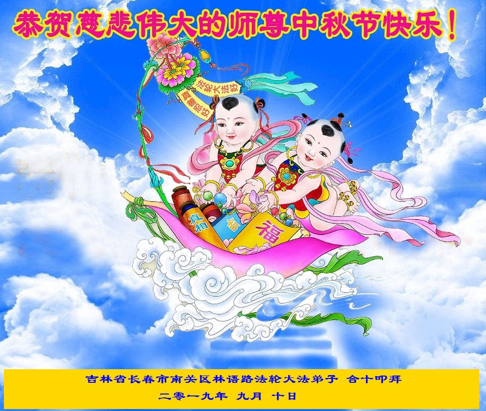 在2019年中秋節來臨之際,大法弟子及家人衷心恭祝師尊中秋快樂!師父辛苦了!感謝師父的慈悲苦度,感恩師父的佛恩浩蕩!弟子唯有精進、精進、再精進!學好法,多救人,助師世間行。