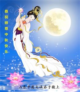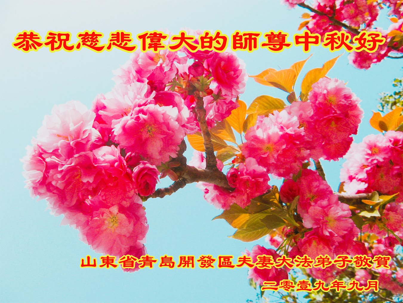 山東省青島開發區夫妻大法弟子恭祝慈悲偉大的師尊中秋好