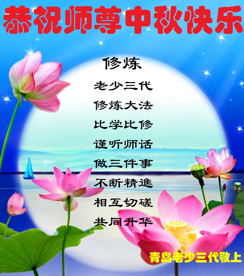 師尊您辛苦了!我們青島嶗山大法弟子恭祝您中秋節快樂!在剩下不多的時間裏,弟子一定聽師父的話,完成好大法弟子的三件事,修好自己,跟師父回家。