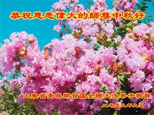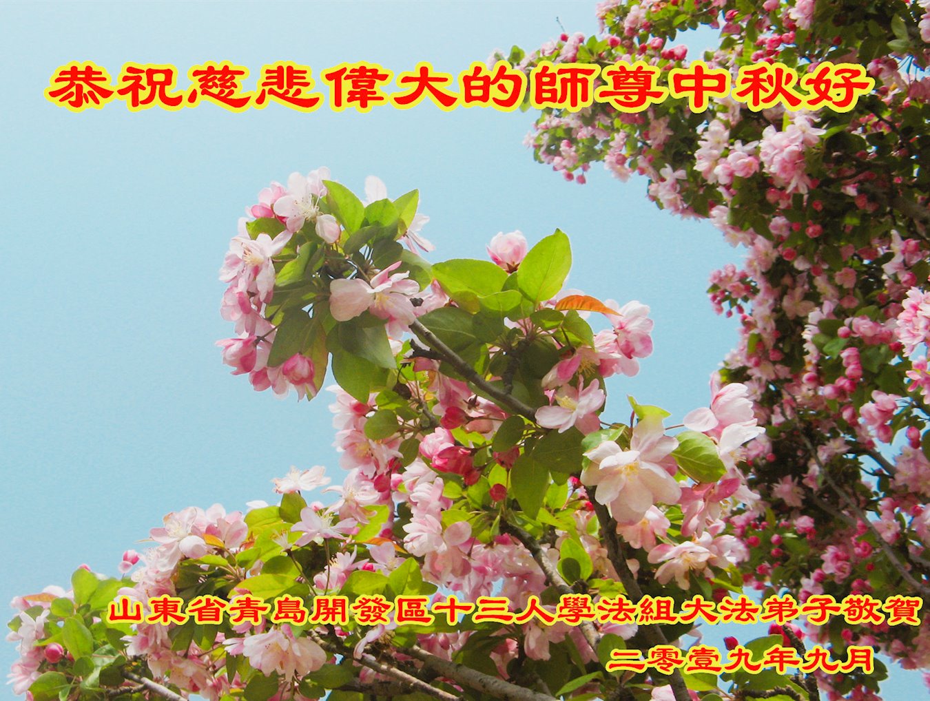 山東省青島開發區十三人學法組大法弟子恭祝慈悲偉大的師尊中秋好!