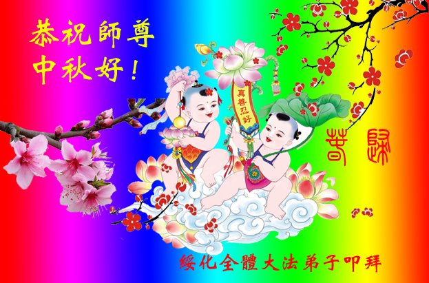 恭祝偉大的師尊中秋快樂!我們一定在剩下的修煉 時間裏,堅定的做好三件事,多救人,兌現誓約,圓滿隨師還 。