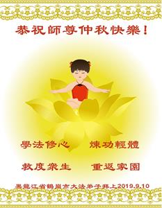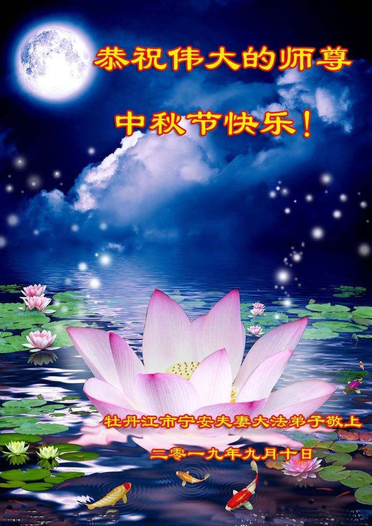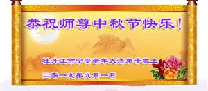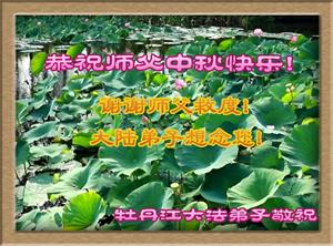 我是一名三十歲的青年大法弟子,八九歲的時候我就已經得法了,非常感恩慈悲偉大的師父讓我成為一名正法時期的大法弟子!我代表我的公公、婆婆同修還有我兒子六歲的小同修全家共同祝願慈悲偉大的師尊中秋節快樂!