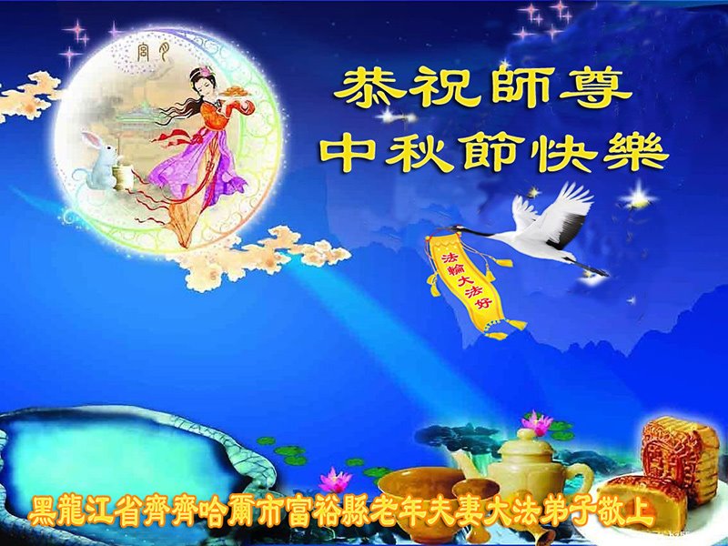 黑龍江省齊齊哈爾市一夫妻倆大法弟子恭祝師父中秋節快樂!