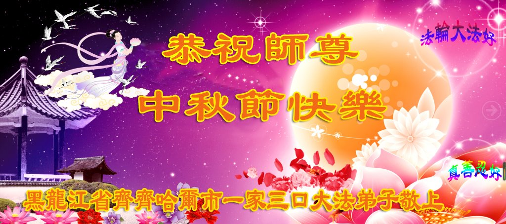黑龍江省齊齊哈爾市一家三口大法弟子恭祝師尊中秋快樂!