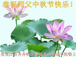 黑龍江省齊齊哈爾富裕縣一學法小組大法弟子恭祝師父中秋快樂!