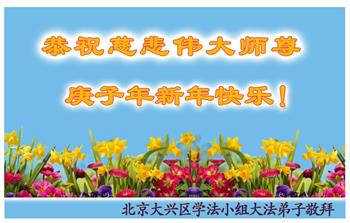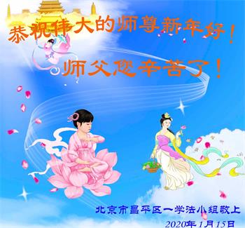 二零二零庚子年新年來臨之際,北京大興區學法小組大法弟子向慈悲偉大師尊致以最崇高敬意!弟子們給師父拜年,恭祝慈悲偉大師尊庚子年新年快樂!師父您好!師父您辛苦了!師父謝謝您!
