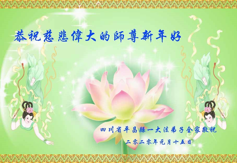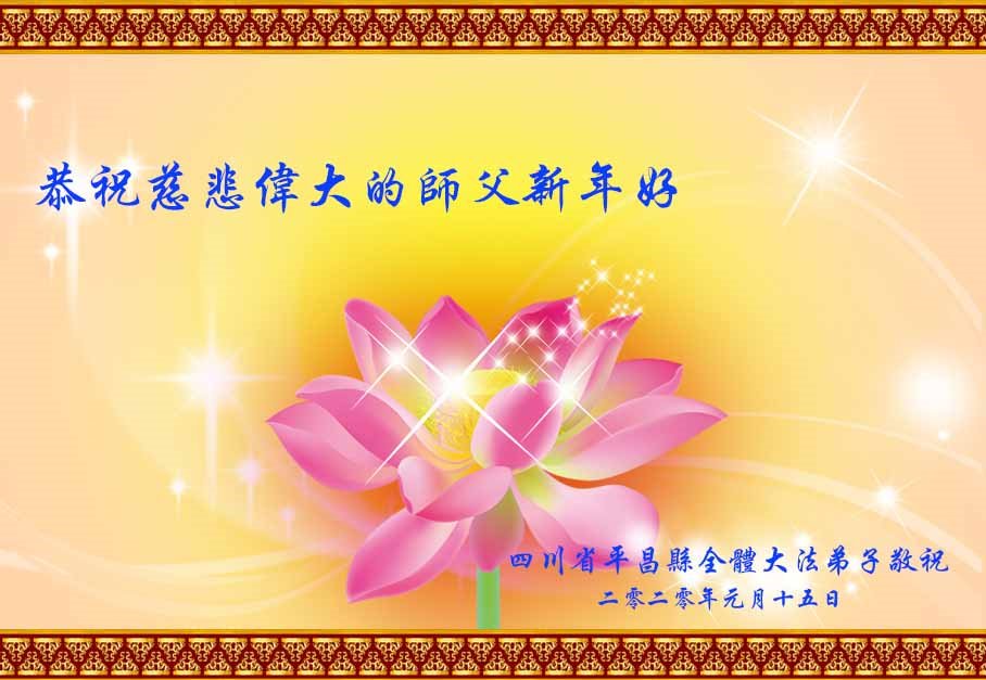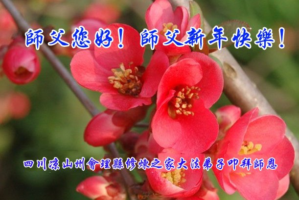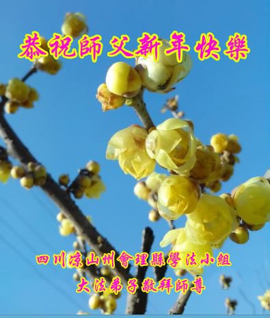 在此我們涼山全體大法弟子,向慈悲偉大的師父叩首拜謝!給師父叩頭拜年!真誠的向師父道聲謝謝!師父您辛苦了!向慈悲偉大的師父深深的問候與祝願:恭祝師父好!恭祝師尊新年好!
