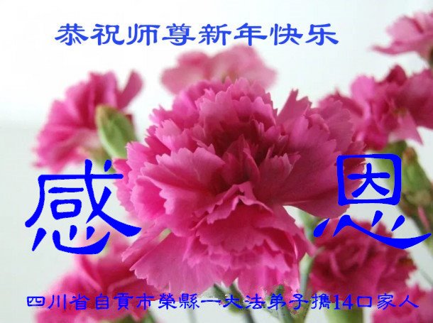 四川省自貢市一大法弟子攜十四口家人恭祝師尊新年快樂!