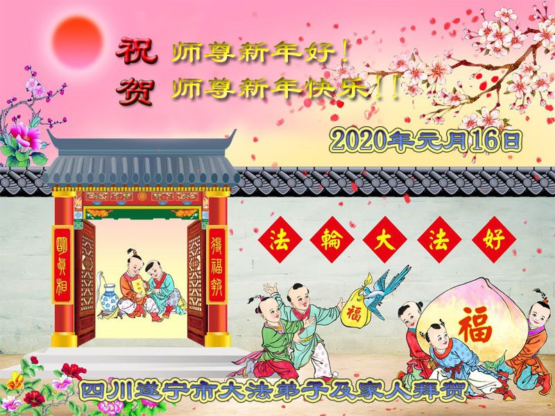 值此2020年中國新年來臨,辭舊迎新之際,我們遂寧市大法弟子及家人,恭祝慈悲偉大的師尊新年好!師尊新年快樂!感恩師尊對我們大法弟子及家人的無量慈悲救度和保護!感恩師尊為我們的巨大承受和付出!