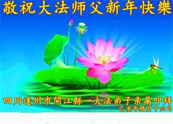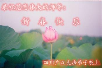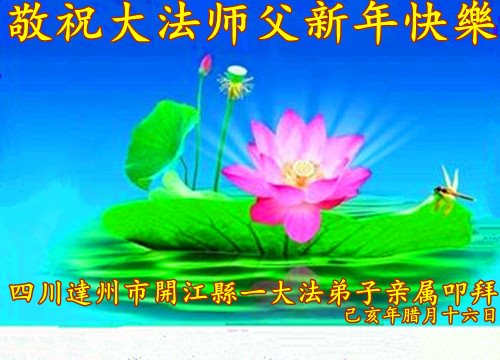弟子與兒子及母親同修、攜不修煉、但敬重大法的丈夫再一次祝師父新年快樂!