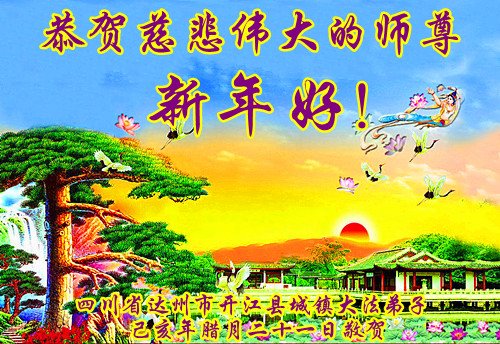 冬去春又來,一年又一年,我們這些沐浴在佛光中的大法弟子,感恩師尊的慈悲救度,感恩師尊的加持和看護,千言萬語道不盡弟子的感激,向慈悲偉大的師尊敬拜,恭祝師尊新年快樂!弟子一定緊隨師尊,走正助師正法之路。
