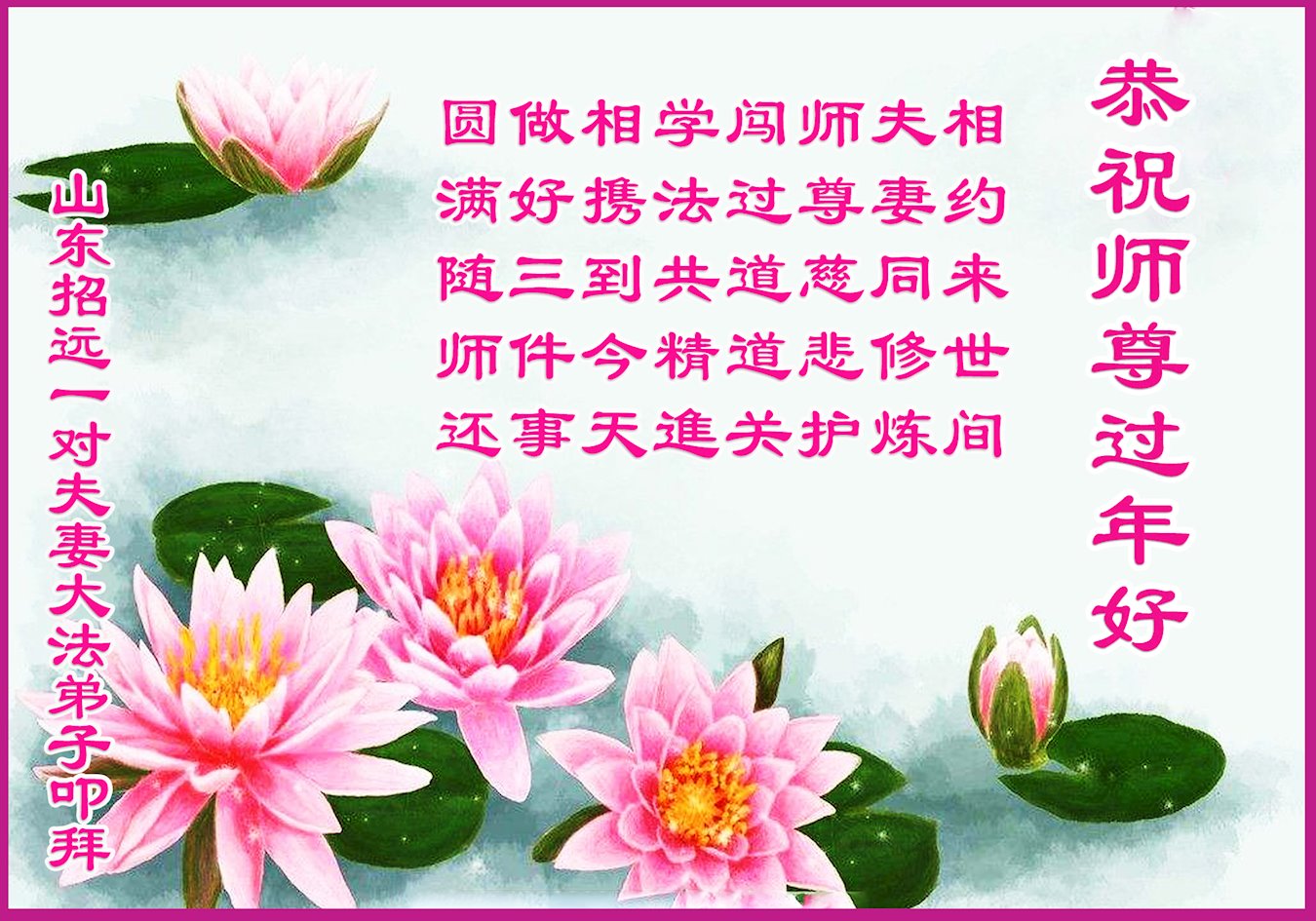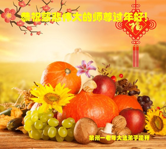師父,過年好!山東棲霞不能上網的大法弟子恭祝慈悲偉大的師尊新年快樂!叩謝師尊慈悲救度之恩!師尊辛苦了,弟子唯有精進以報師恩!