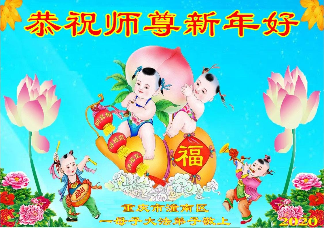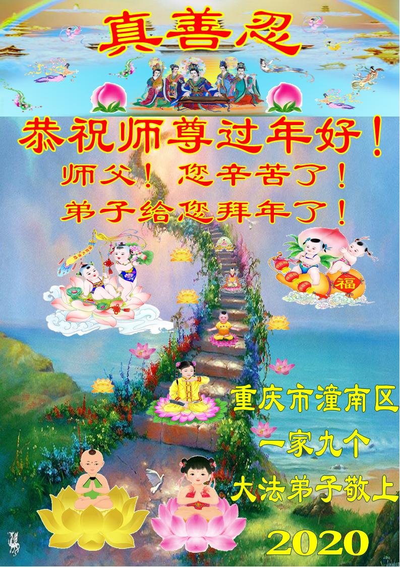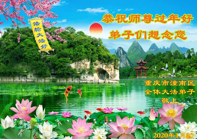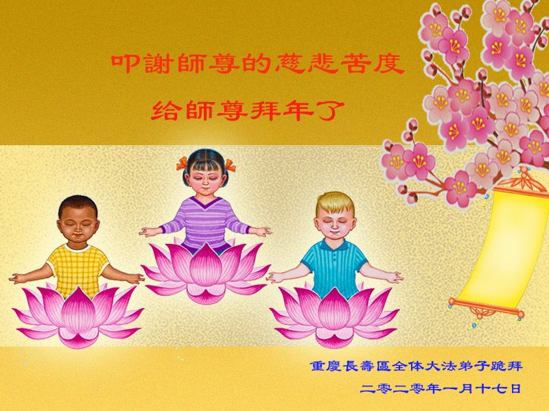 重慶市一大法弟子及家人恭祝慈悲偉大的師尊新年快樂!師父辛苦了!