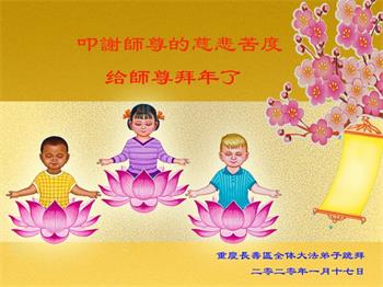 重慶市大渡口區大法弟子及全家給慈悲偉大的師尊拜年!