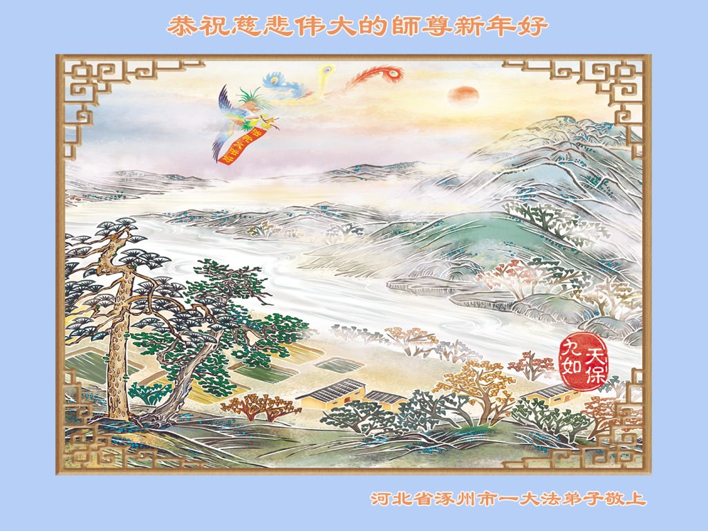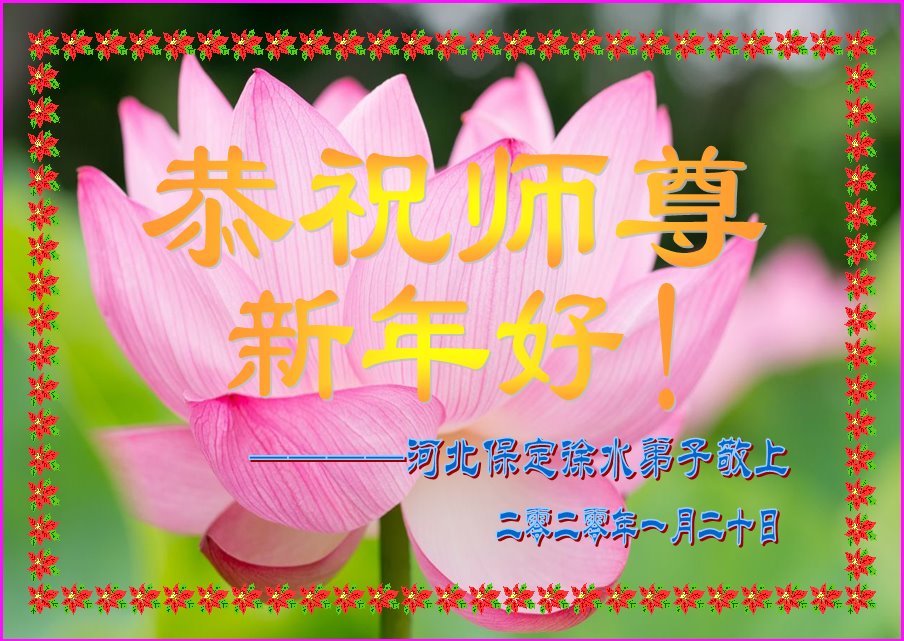 河北省保定市清苑區大法弟子給慈悲偉大的師尊拜年,叩謝師尊救度之恩,恭祝師尊新年快樂!