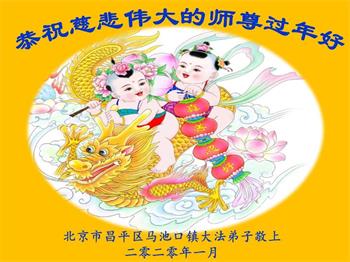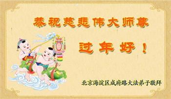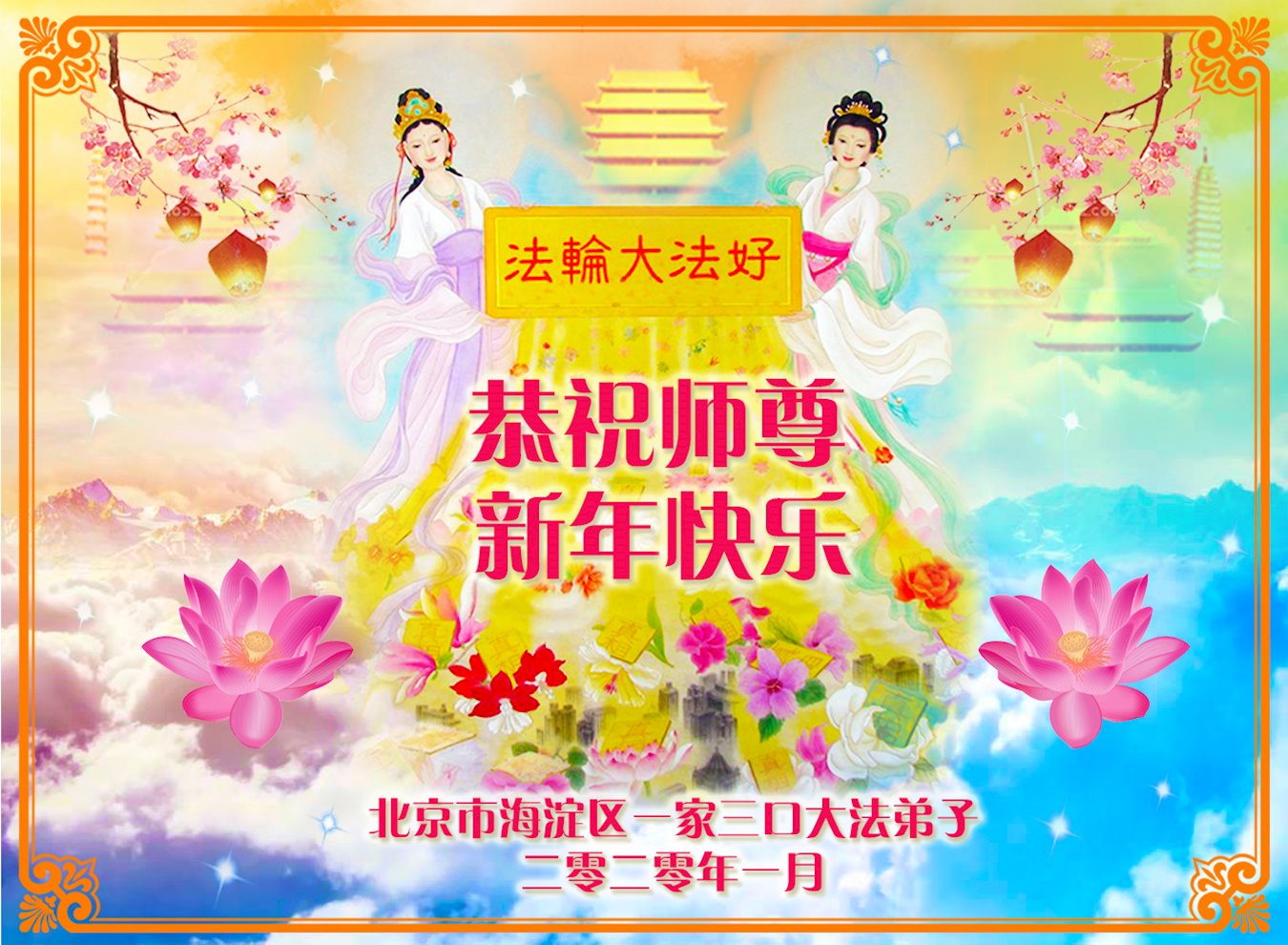 二零二零庚子年新年來臨之際,北京海澱區成府路大法弟子向慈悲偉大師尊致以最崇高敬意!弟子給師父拜年,師父過年好!恭祝慈悲偉大師尊庚子年新年快樂!師父您好!師父您辛苦了!師父謝謝您!