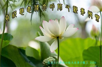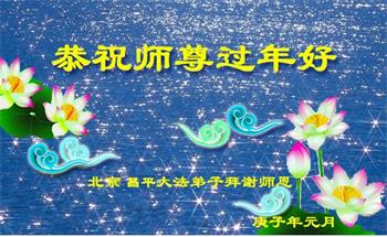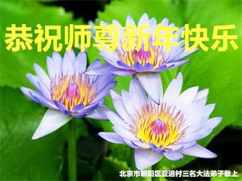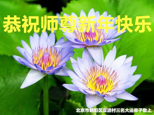 在新年來臨之際,弟子們在北京給師父拜年了!恭祝師父過年好!新年伊始,萬象更新,弟子們將努力做好三件事,多救人,讓大法惠澤眾生,讓佛光普照寰宇。